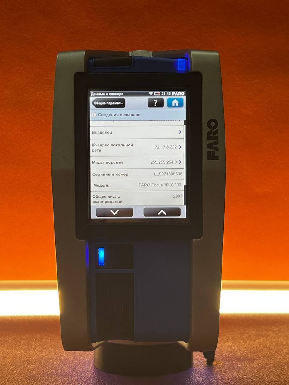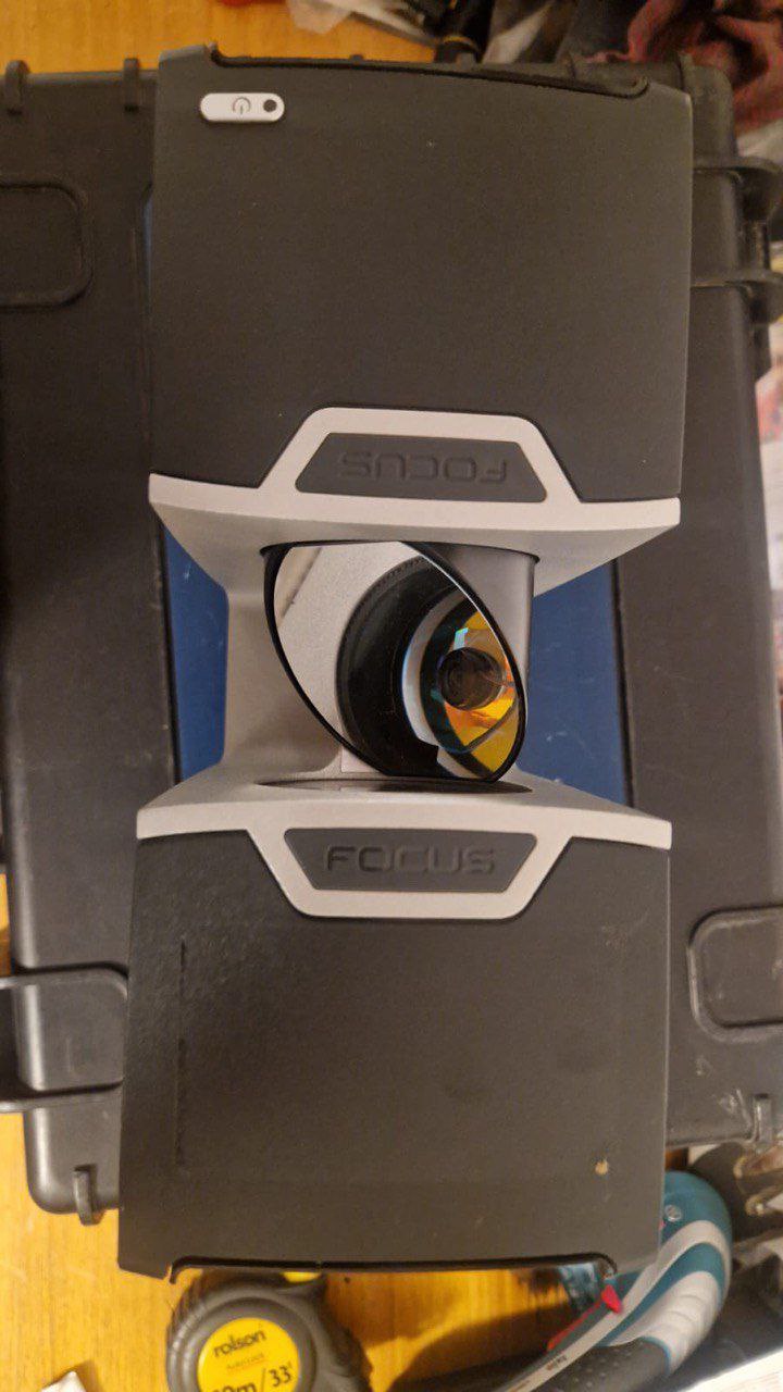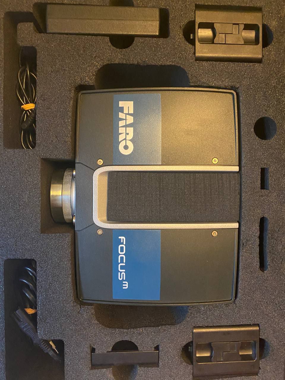 FARO Focus M70 в отличном визуальном состоянии, аккуратно хранится в фирменном кейсе (все стороны и оптика на фото). В комплекте сканер, аксессуары и кабели для работы «из коробки»; при необходимости можно доукомплектовать штативом и мишенями.